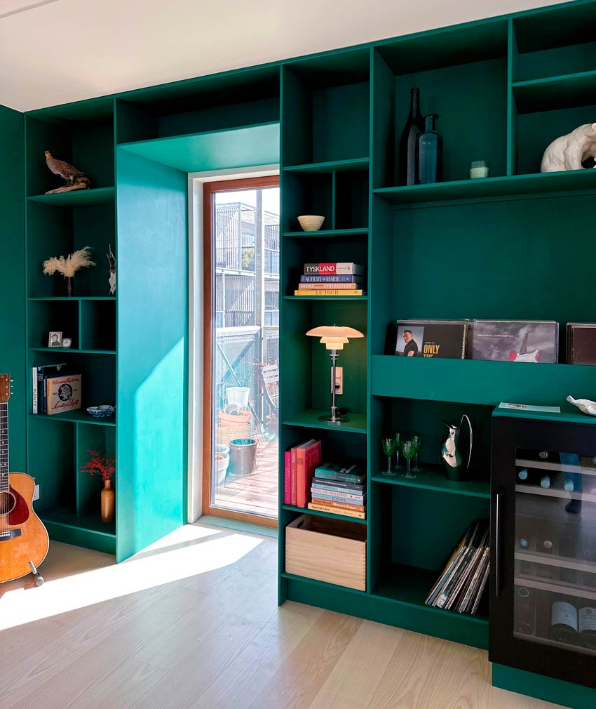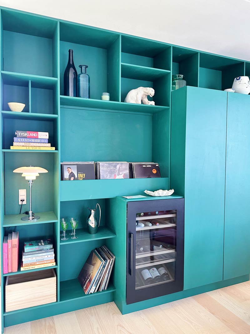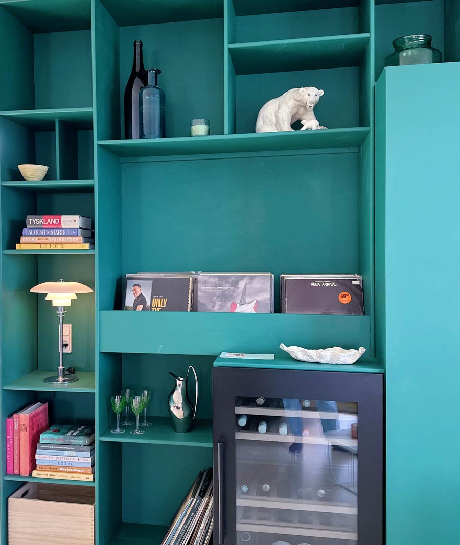 - Et tip er også at male hele reolen i samme farve som væggen.